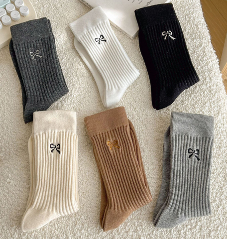 ถุงเท้าสตรีผ้าฝ้ายถักลายโบว์สำหรับผู้หญิงถุงเท้าแฟชั่น