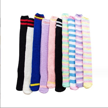 Plain Women Tube Winter Fluffy Thick Long Over Knee High Socks Sleeping Floor Crew Hosiery Home Cozy Warm Socks for Women